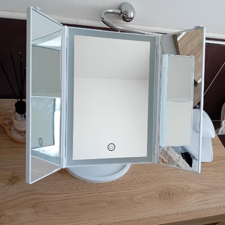 Uitați de colțurile întunecate și de aplicarea nesigură a machiajului. Oglinda noastră oferă lumina ideală, fără umbre, astfel încât fiecare mișcare a pensulei să fie precisă și naturală. Este ușor de utilizat, are un design elegant și devine aliatul tău de încredere în rutina zilnică de îngrijire și înfrumusețare.